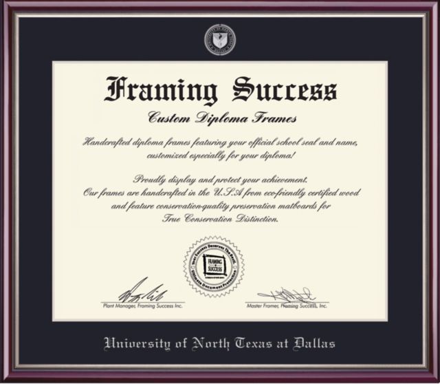 Unt dallas diploma frame. To honor that moment and the years of personal sacrifice let your friends and loved ones join the celebration. That s why we stand behind our 120 day return policy. The university of texas at dallas diploma frames. High quality custom framing isn t just our business it s our passion.